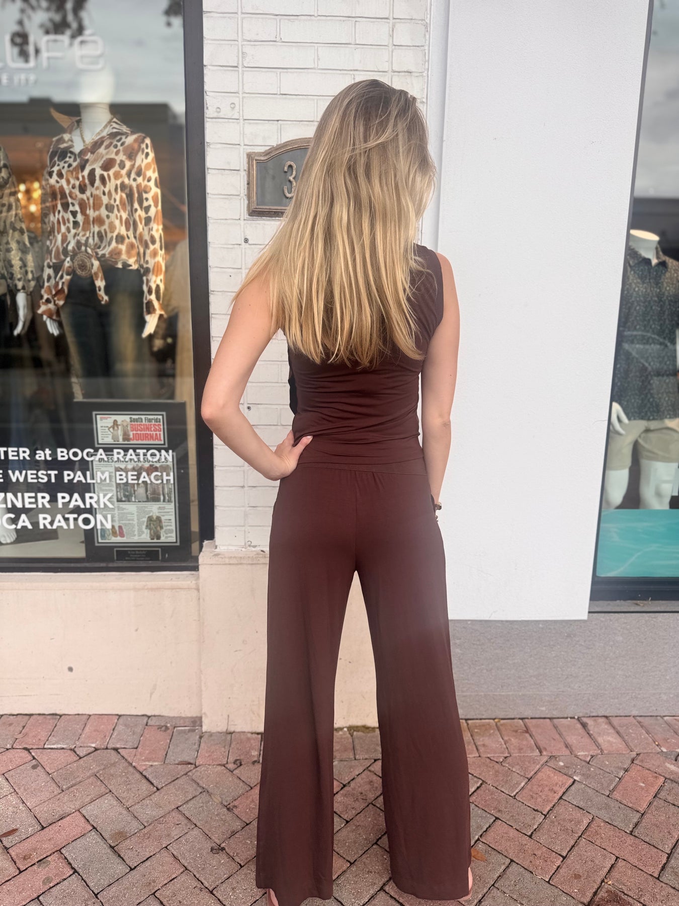 Ease into elevated comfort with the Chocolate Sunset Lounge Set — a sleek and sophisticated duo designed for the woman who craves softness with style. Crafted from a silky-soft rayon-elastane blend, this set blends stretch, fluidity, and a touch of luxury, perfect for both lounging and stepping out.