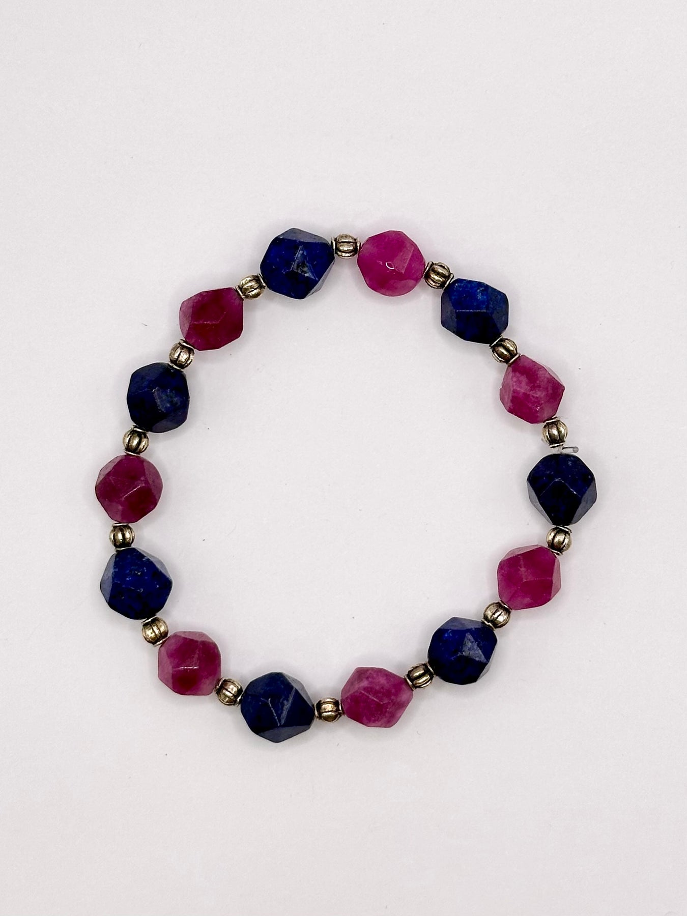 Deep magenta faceted semiprecious stones and midnight blue faceted semiprecious stones