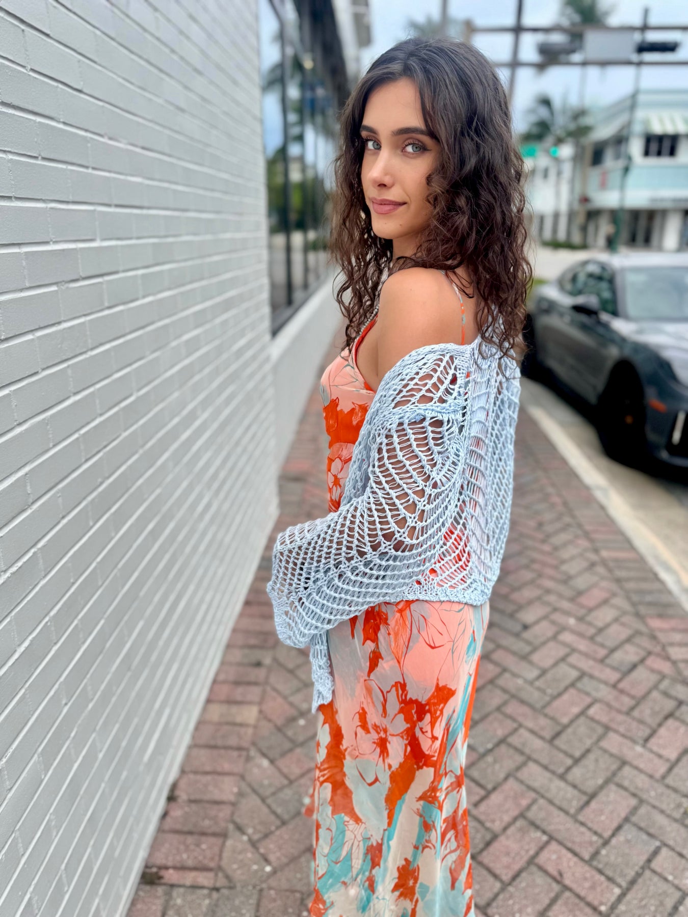 Slip into something sun-kissed with the Island Bloom Silk Blend Dress. This breezy midi features a bold floral print in fiery coral, turquoise, and soft peach — designed to turn heads with every step. Crafted from a featherlight silk-blend fabric and finished with delicate spaghetti straps, it’s the ultimate go-to for tropical getaways or any warm-weather escape. Layer with a crochet cardigan and turquoise accessories for a fresh coastal vibe.