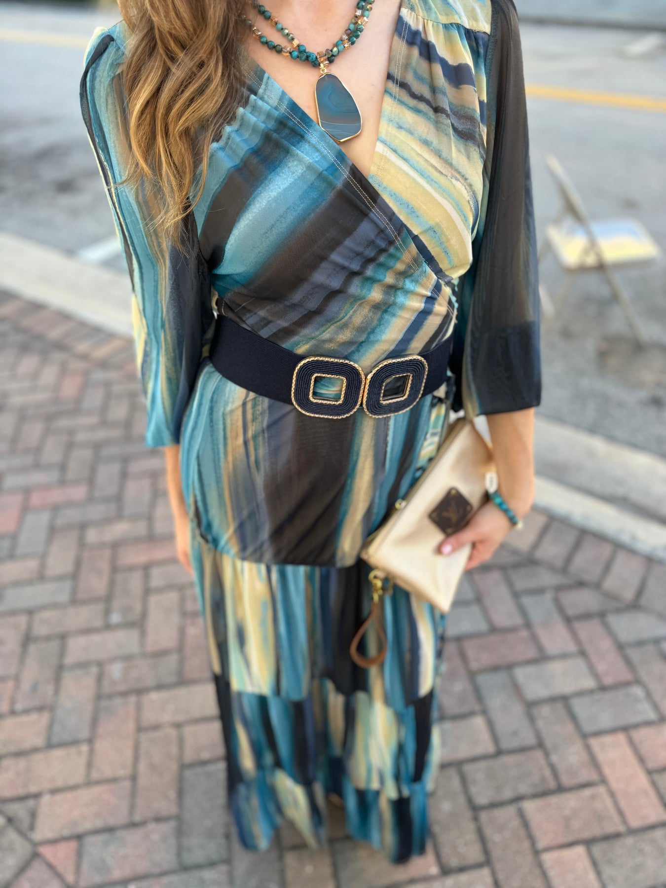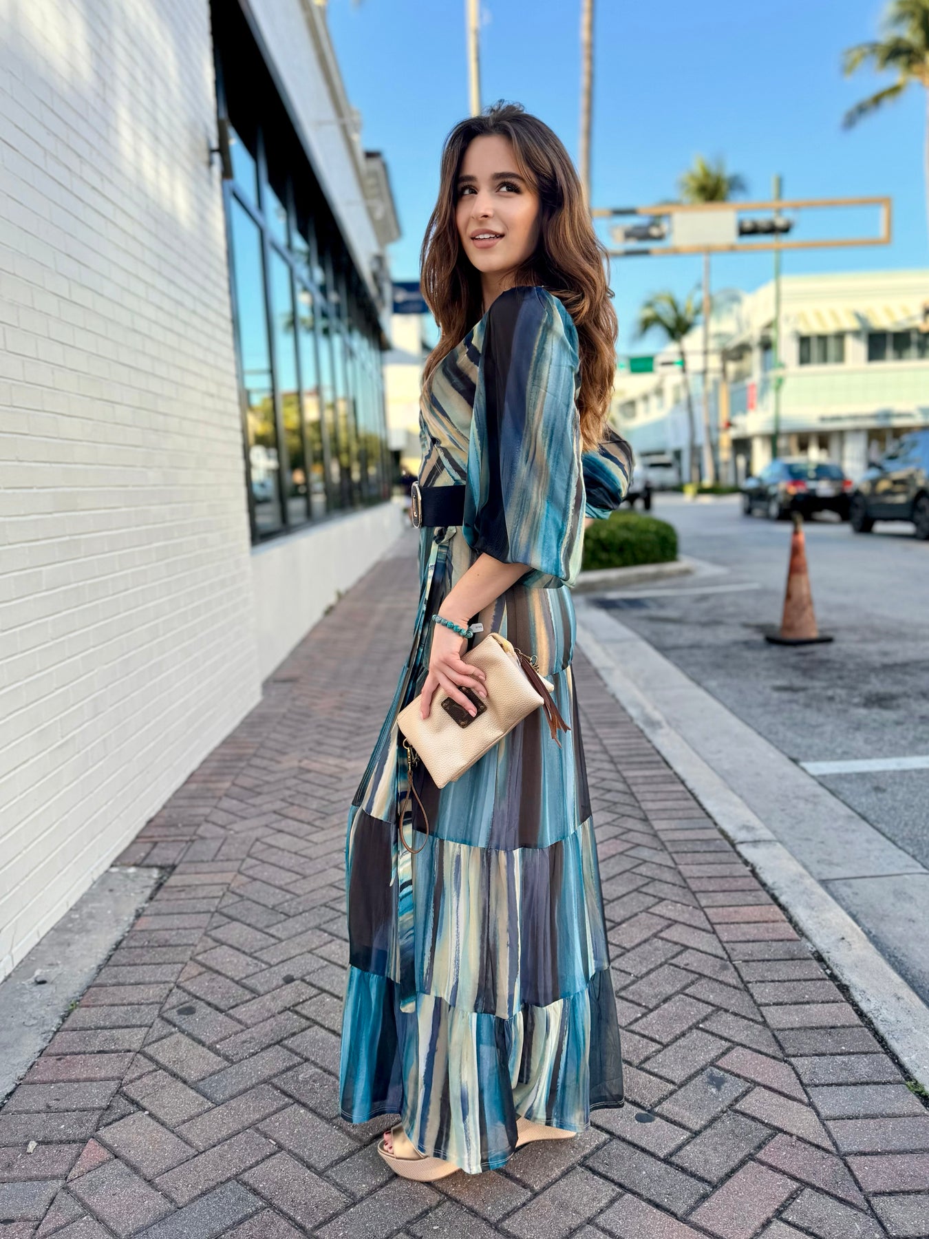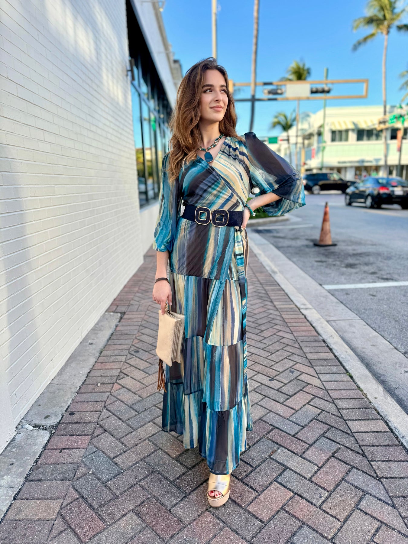 Make waves wherever you go in the Oceania Maxi Wrap Dress. This ocean-kissed beauty features a flowing wrap silhouette, lightweight fabric, and a flattering deep V neckline. With its relaxed elegance and effortless movement, it’s perfect for everything from tropical vacations to coastal weddings. Pair with nude wedges and shell-inspired jewelry for a coastal-chic vibe.