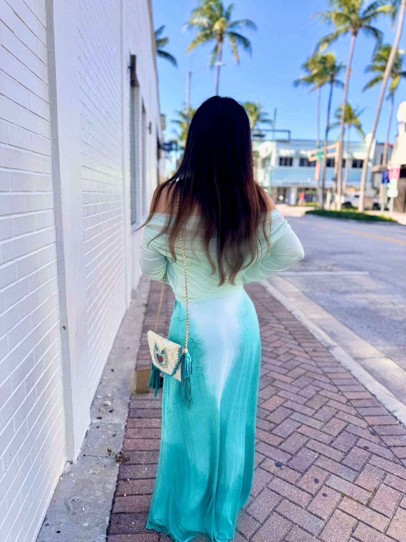 Ombre-dyed aqua hues inspired by the sea or pink and tan ombre hues inspired by a beach sunset