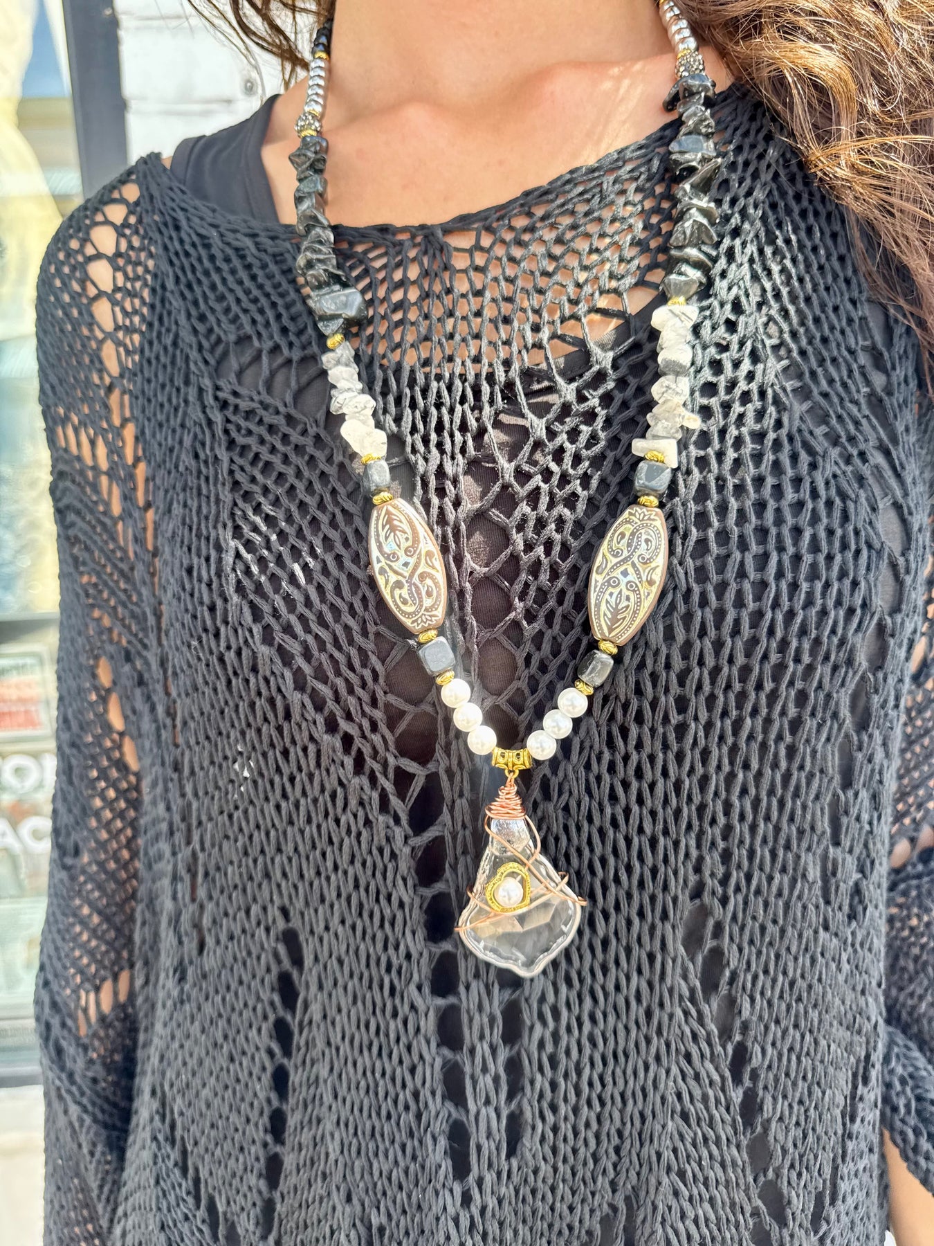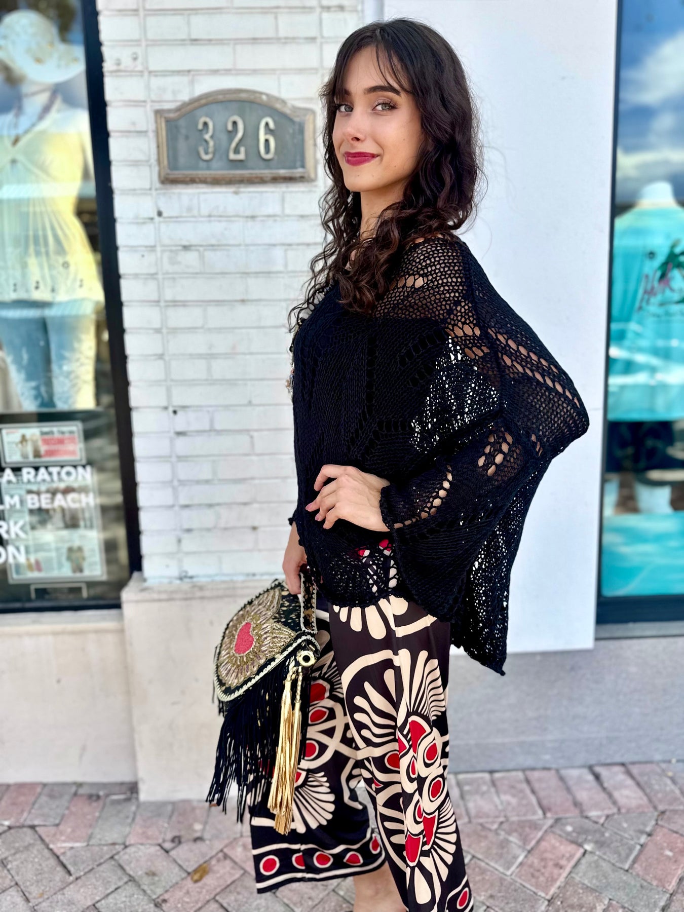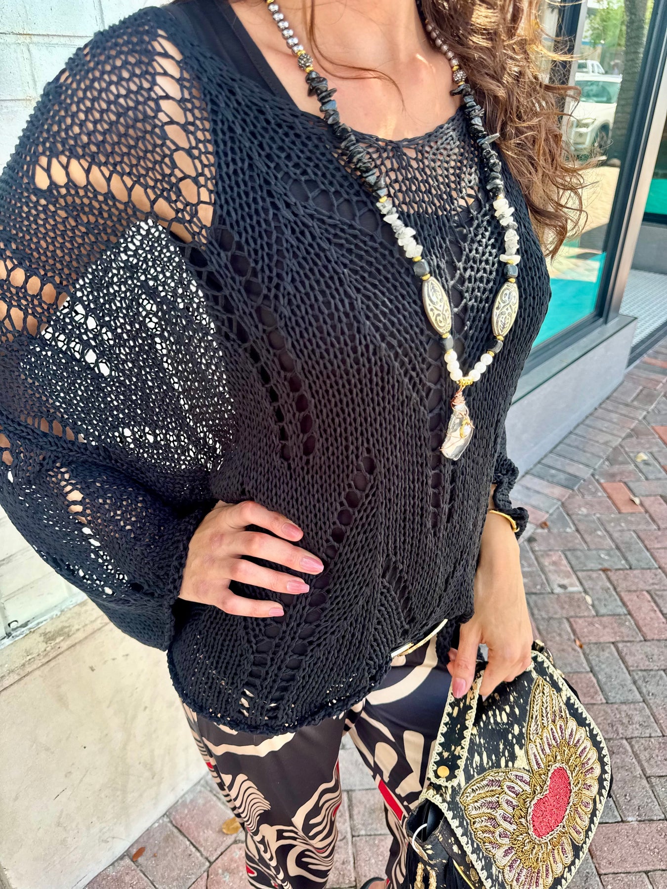 Effortlessly chic and coastal cool, the Midnight Breeze Crochet Sweater is your go-to layering piece for transitional days and breezy nights. Crafted from breathable open-knit crochet, this oversized black sweater drapes beautifully and adds instant texture and style to any outfit. The wide boat neckline and relaxed fit make it perfect for slipping over a bikini, bandeau, or tank — whether you're heading to the beach, brunch, or a sunset stroll.