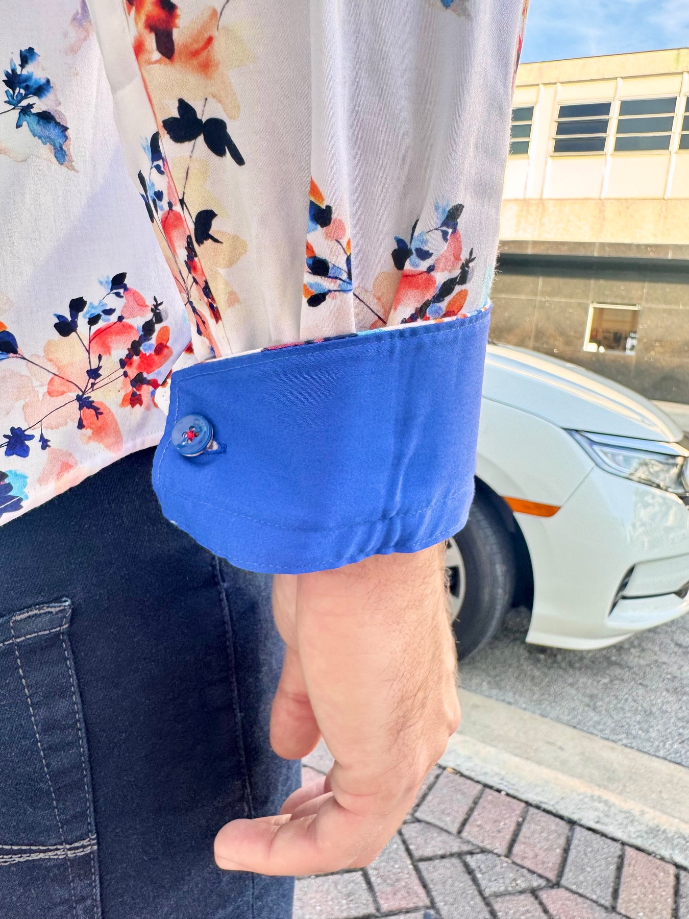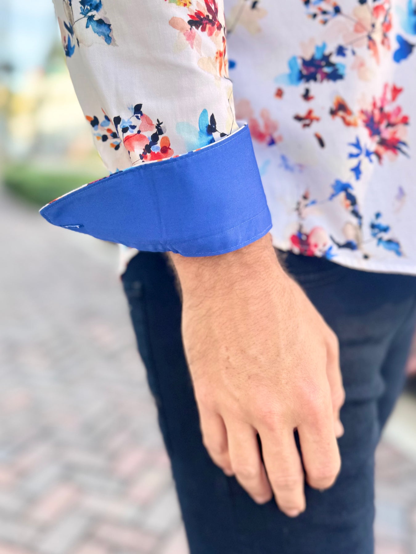 Signature detailed contrast cuff in vibrant cobalt for a standout rolled-sleeve finish