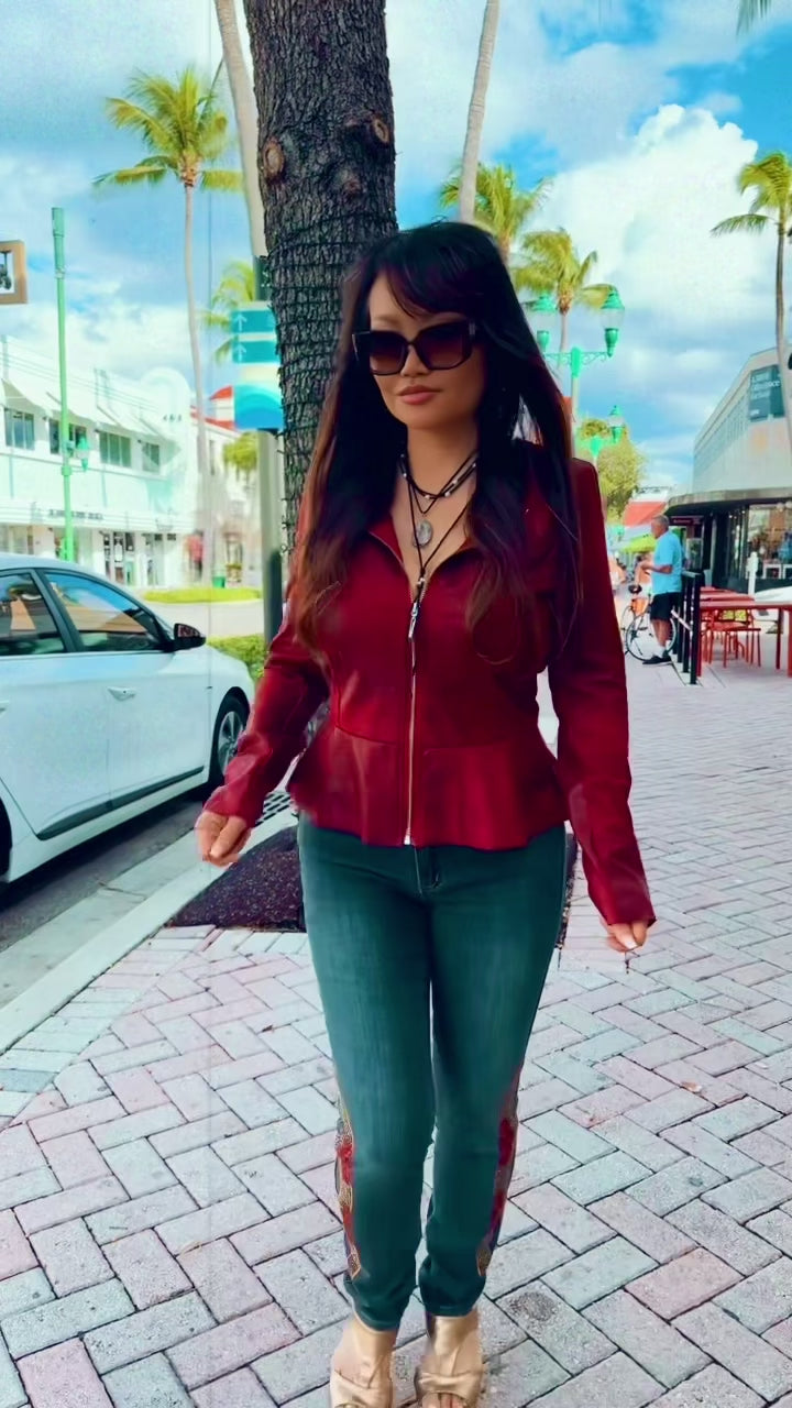 Artful, bold, and beautifully unique — the Verona Embellished Side-Panel Jeans bring a touch of luxury to everyday denim. Intricate gold embellishment intertwines with vibrant red floral accents along the outer leg and side-panel, creating a statement piece that blends modern edge with couture-inspired detail. These jeans instantly elevate any outfit while remaining as comfortable and wearable as your favorite pair.