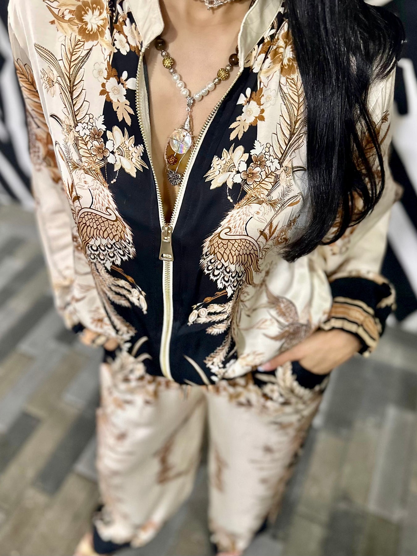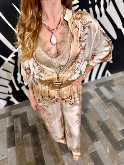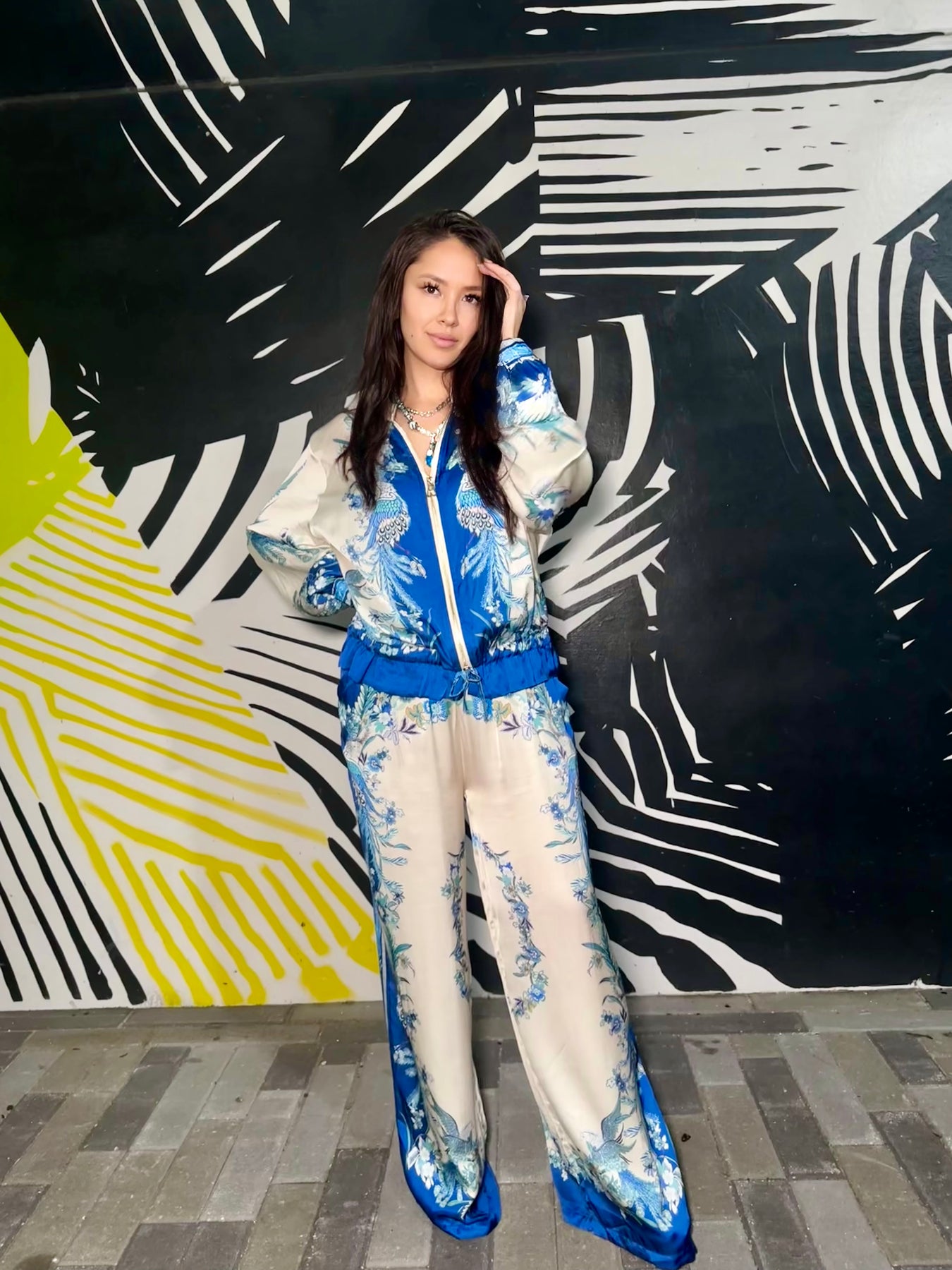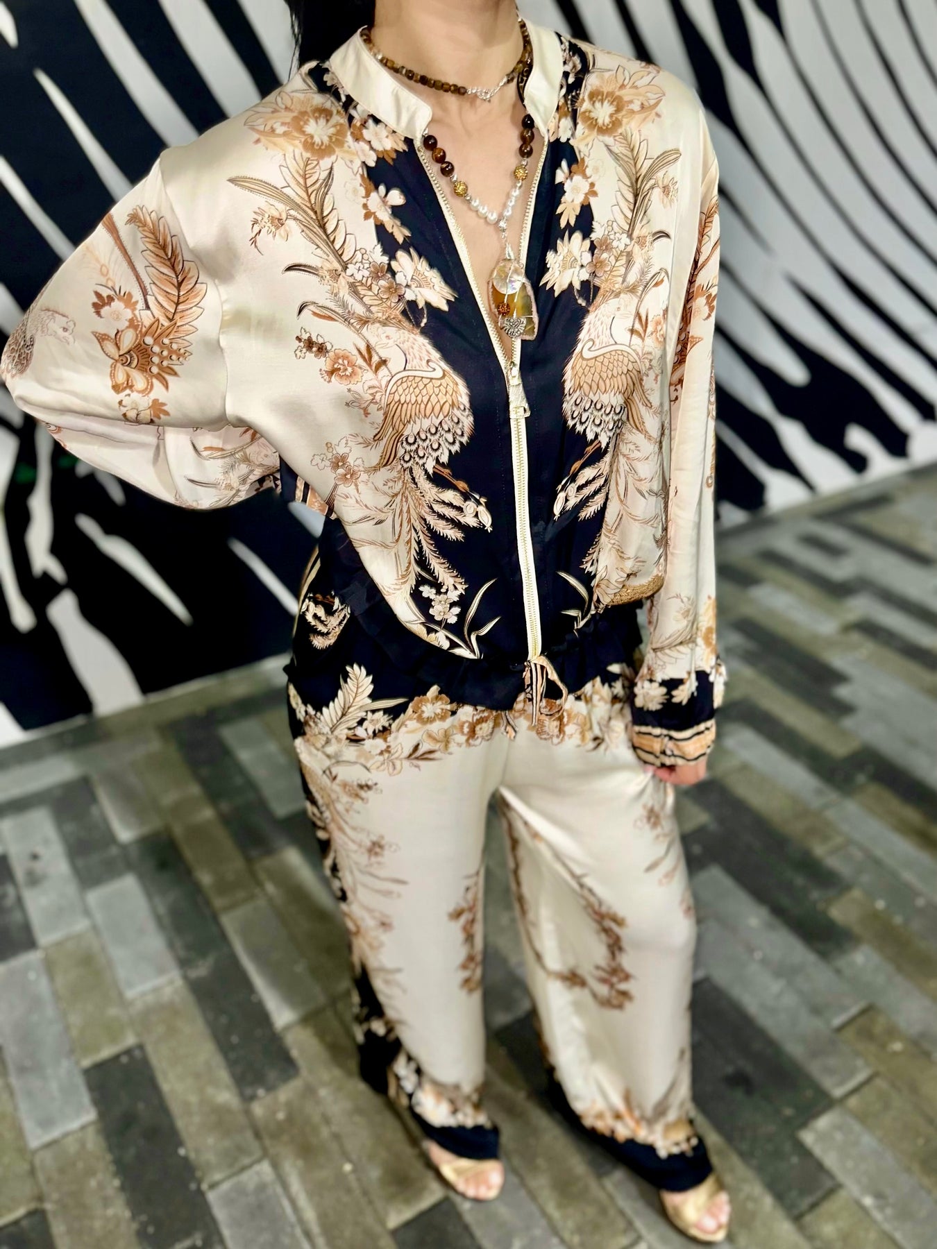 Kyoto Silk Blend Zip Up Top/Jacket and Pant Set