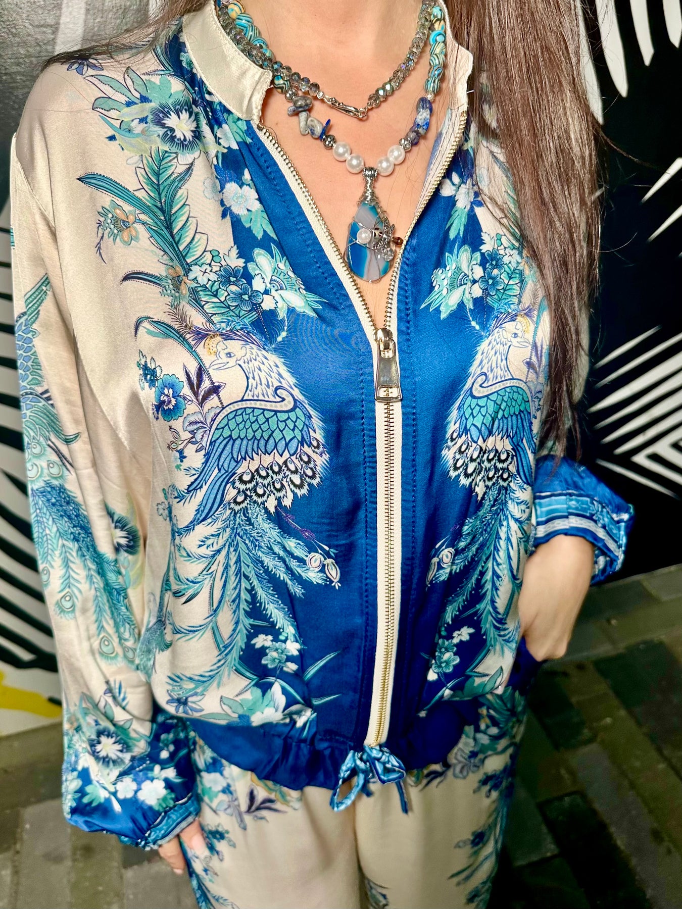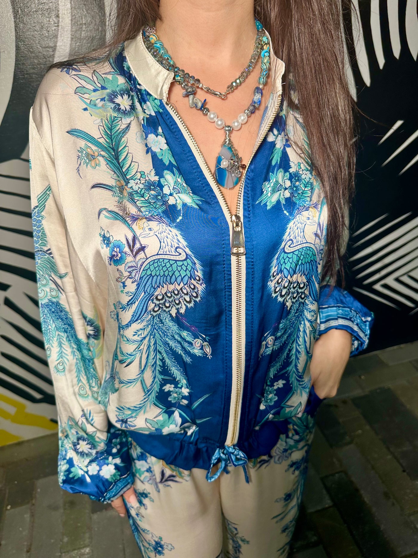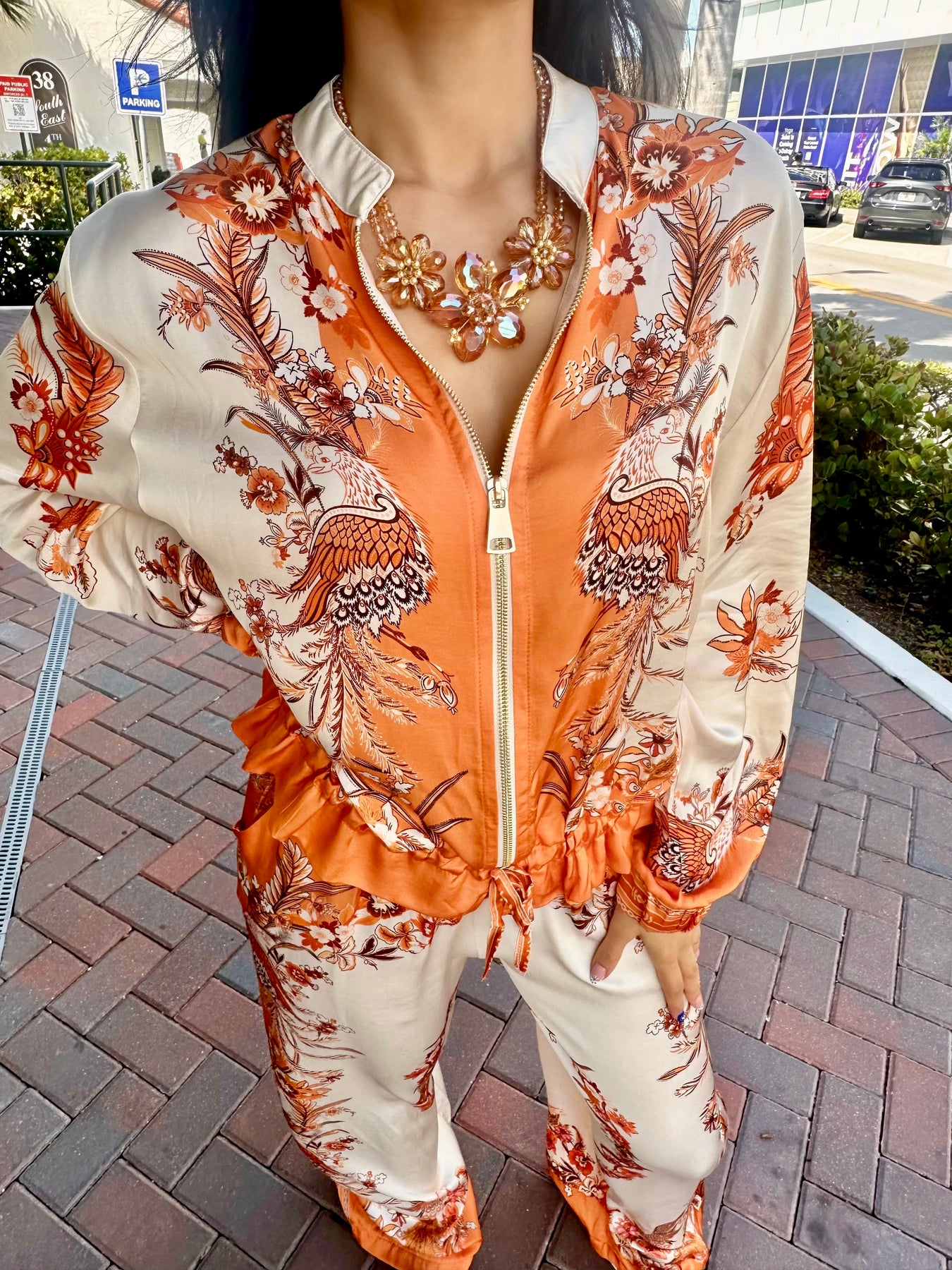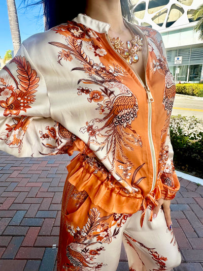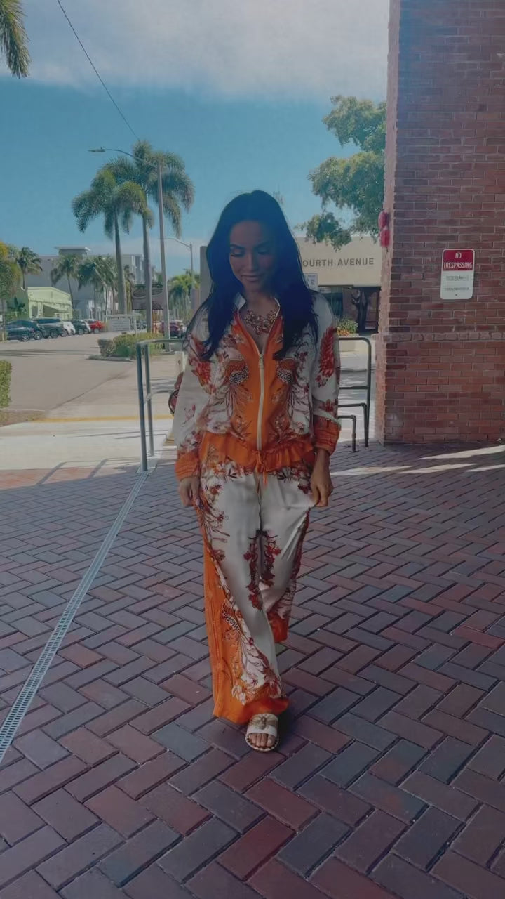 Kyoto Silk Blend Zip Up Top/Jacket and Pant Set