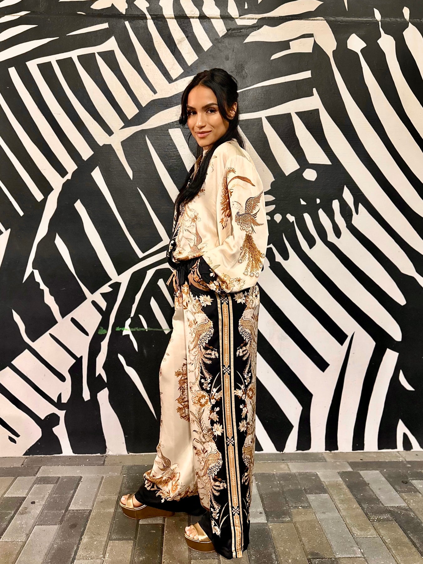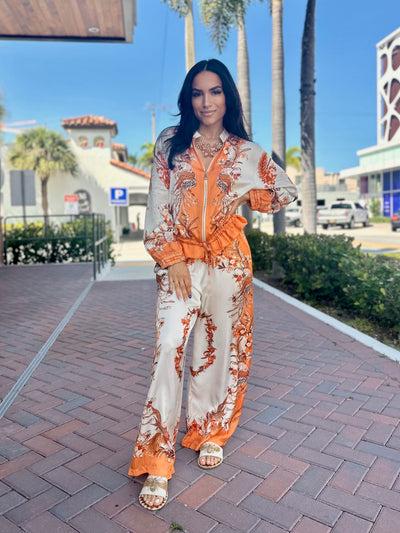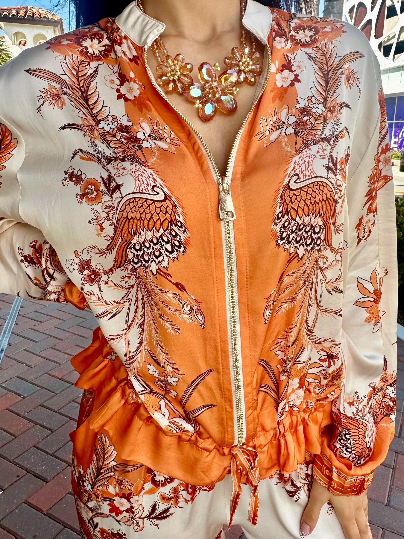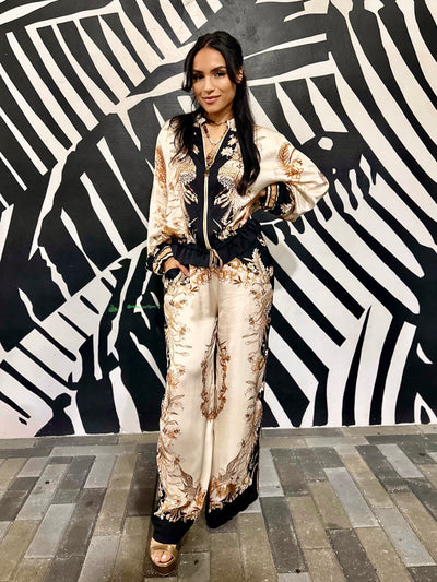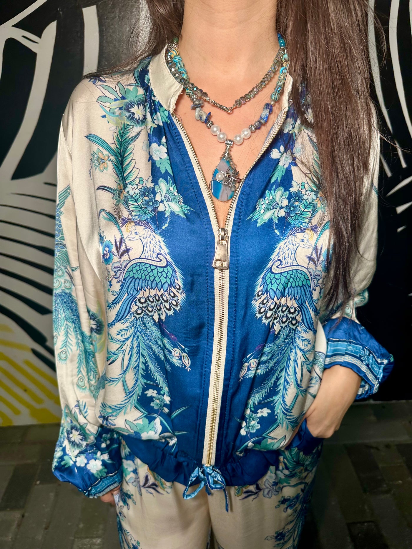 Kyoto Silk Blend Zip Up Top/Jacket and Pant Set