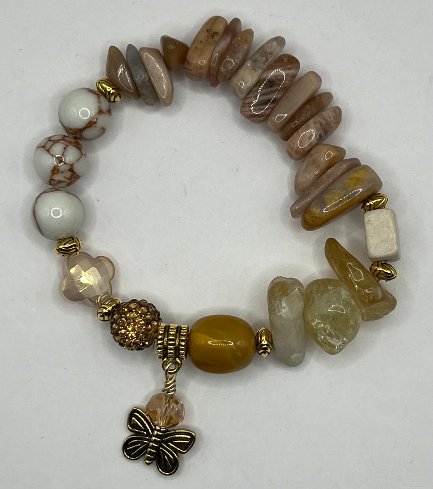 Cafe Latte Sparkle Butterfly Golden Stretch Bracelet