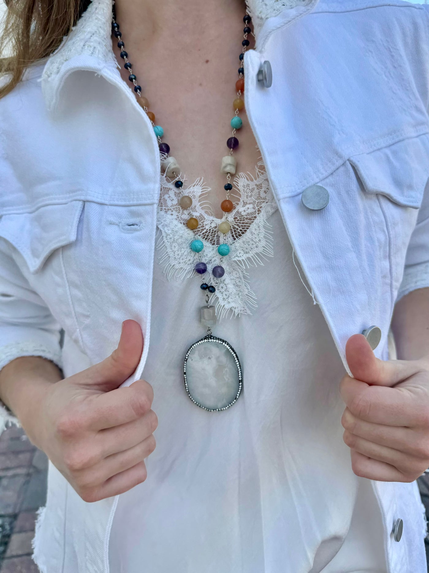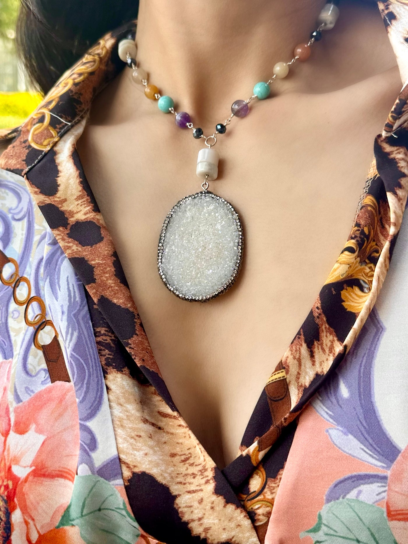 Necklace beads: moon stone, Aventurine, blue Turquoise, Amethyst and Hematite