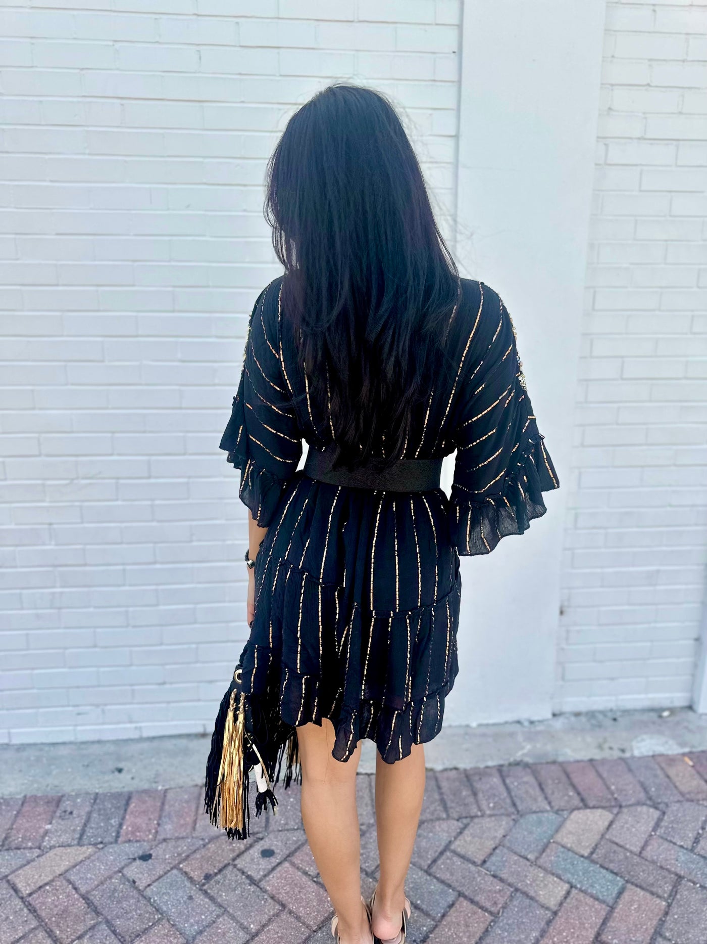 Black and and gold lurex mini dress