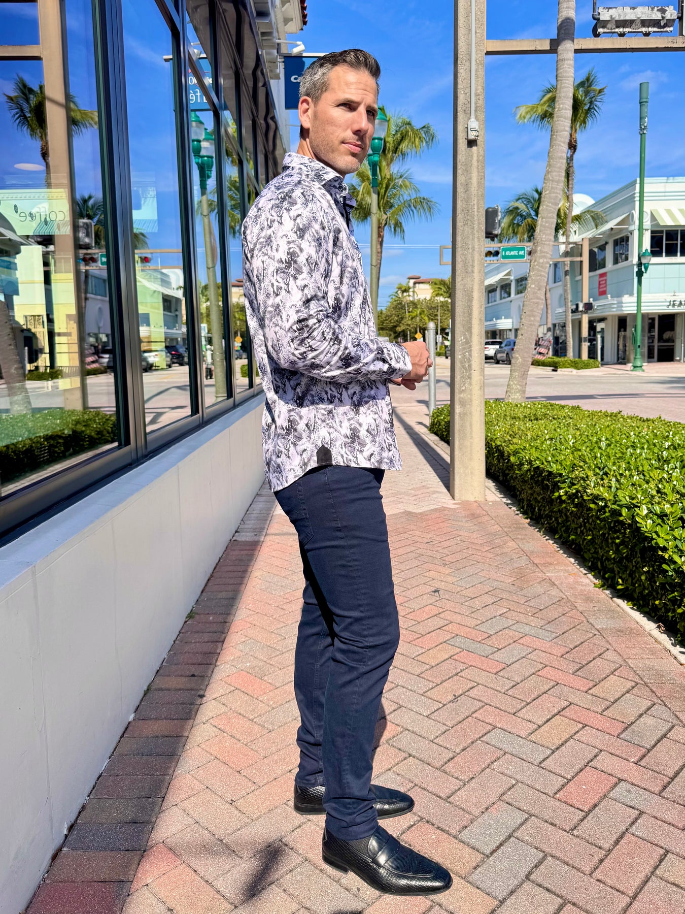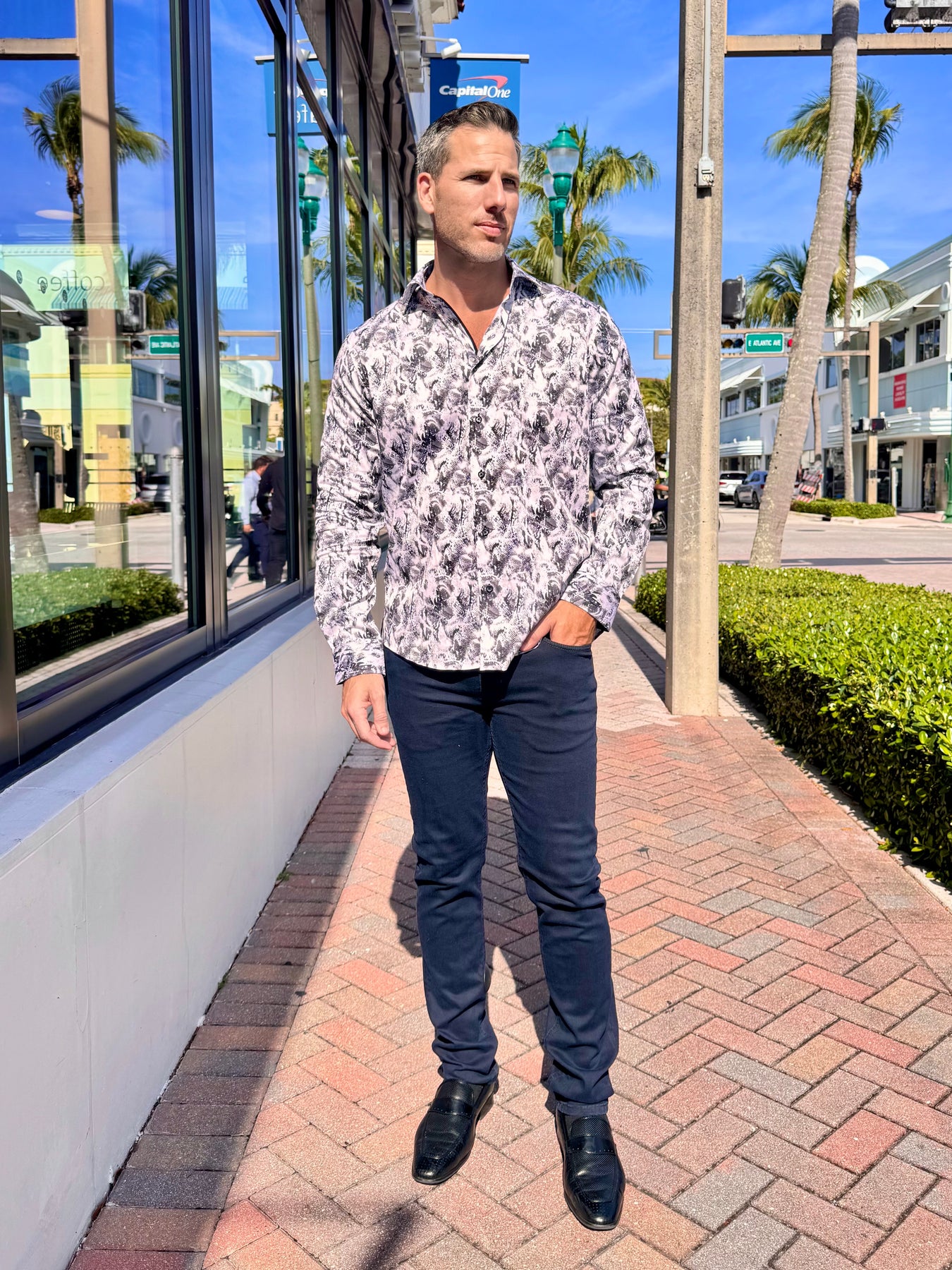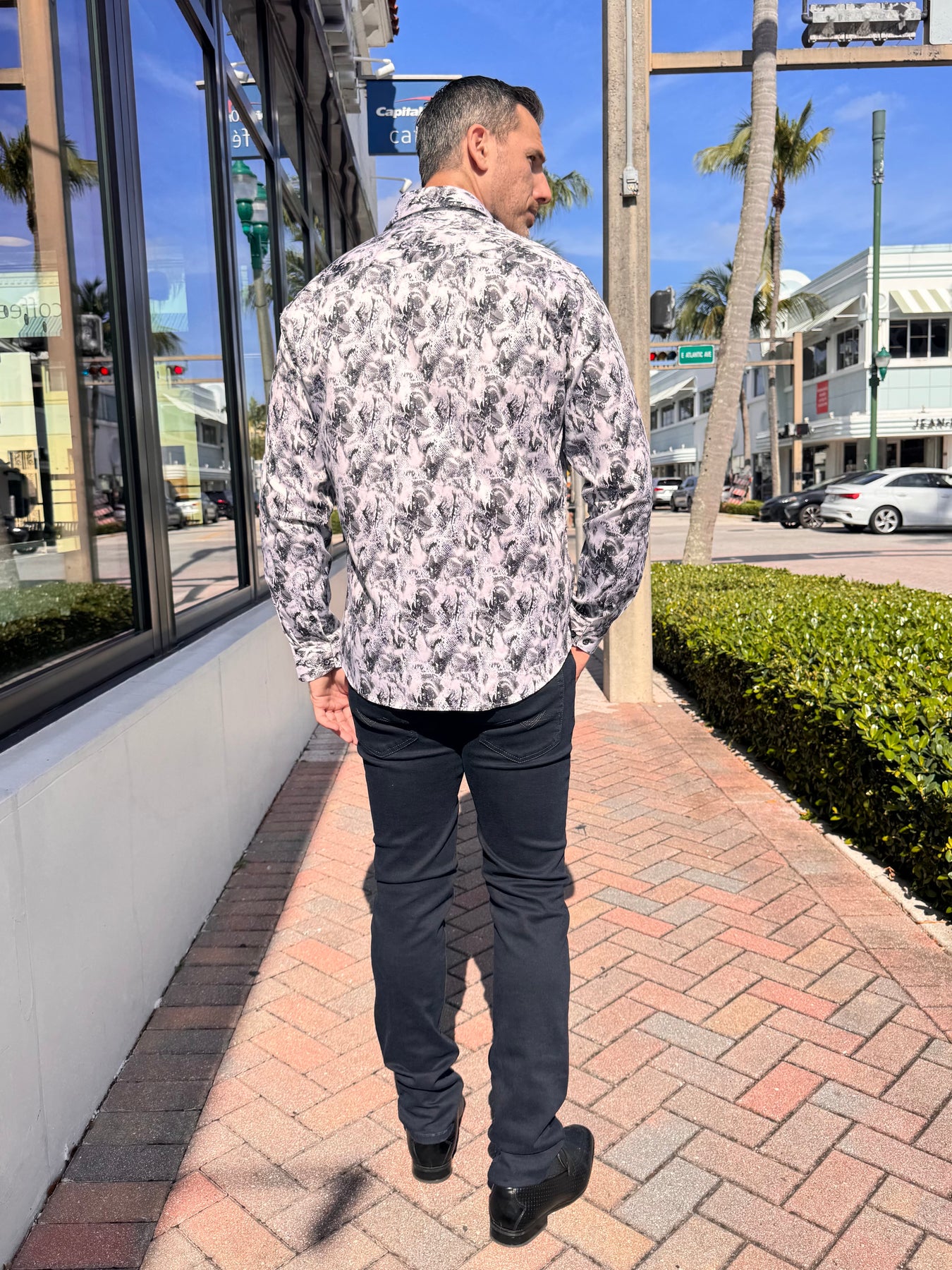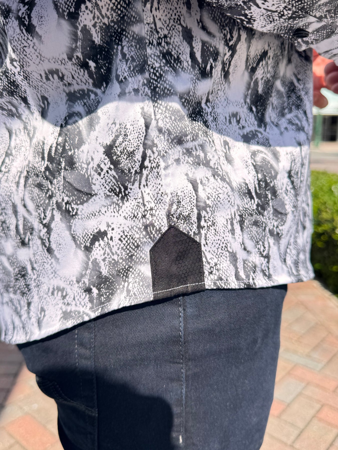 A bold, monochrome statement piece designed for the man who isn’t afraid to stand out. The Midnight Python Contrast Long Sleeve Button-Down features an abstract black-and-white snakeskin print that adds depth and edge, paired with sleek black contrast details and a pop of red for unexpected sophistication. Modern, sharp, and effortlessly confident—this shirt turns every entrance into a moment.
