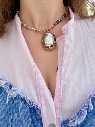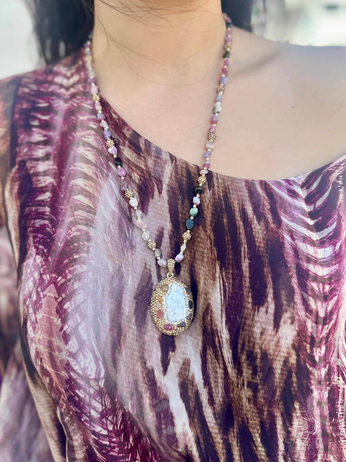 Multicolor Tourmaline chip stone necklace