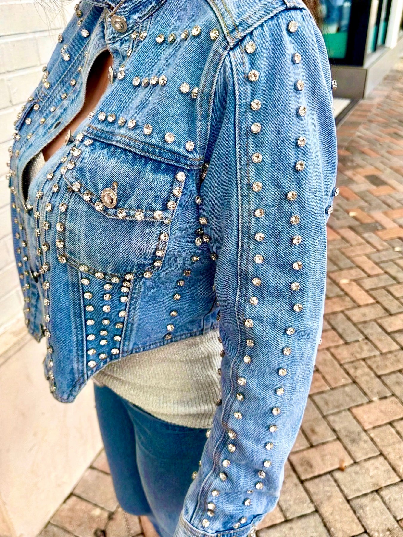 Cropped denim jacket with silver stud embellishments